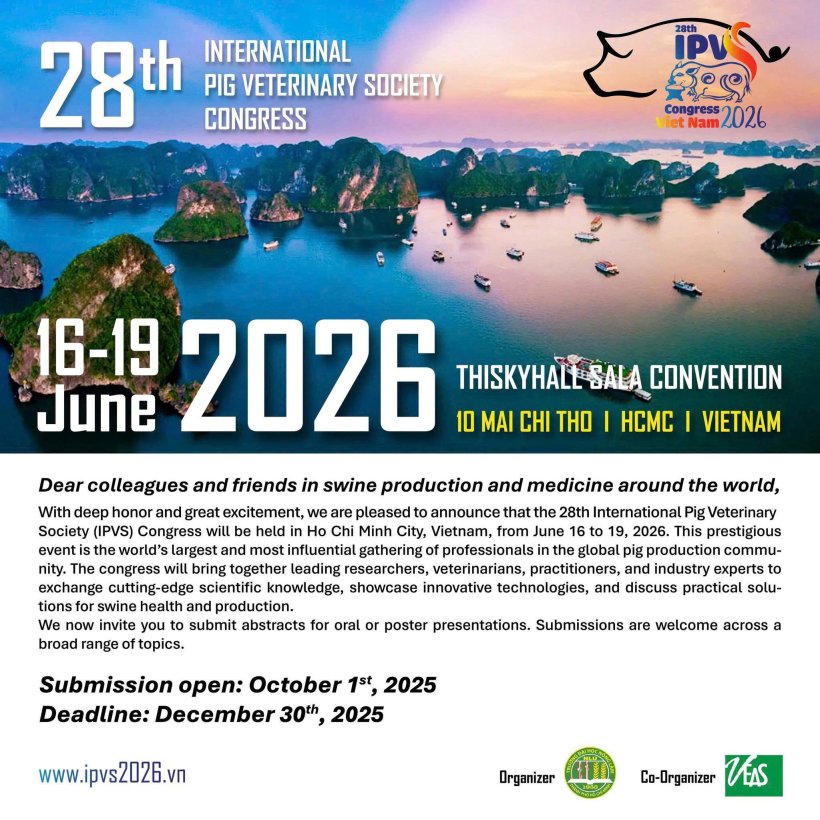 The 28th International Pig Veterinary Society (IPVS) Congress, the world’s most prestigious event in the field of swine health and production, will take place in Ho Chi Minh City, Vietnam, from June 16 to 19, 2026. This global gathering promises to bring together leading minds from academia, veterinary practice, and the swine industry.