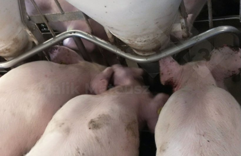 This type of biting may occur when feeding space is limited or when feed supply is inconsistent. Speculatively, such feeder-related aggression may persist into the early fattening phase if similar problems were already present during the nursery period. It is not uncommon for weaner pigs imported to Polish fattening farms to arrive with ear lesions, either fresh or healed; these lesions typically resolve within three weeks. However, in some individual pens, the problem may persist for a longer period.