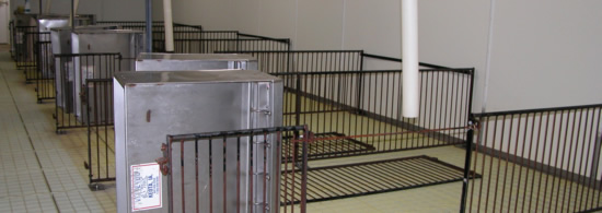 Design of facilities and equipment for pig farms: building design, climate control, feeding systems, etc.