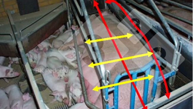 The Danish pig producers’ research organisation has tested a number of different designs. They recommend pen dimensions of 2.7x1.8 m to accommodate modern prolific breeds.