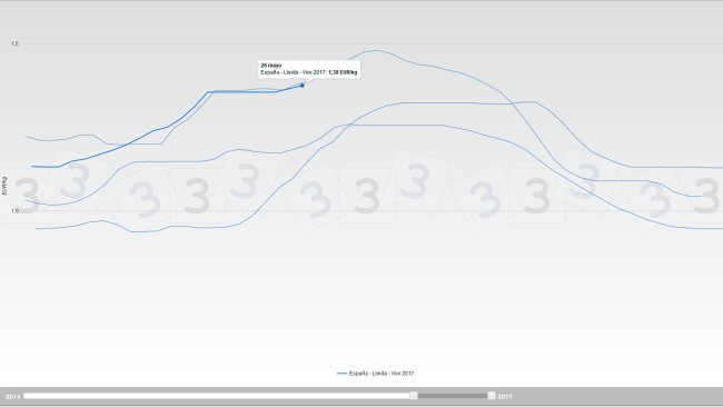Very probably, the Spanish price will remain above €1.40/kg liveweight until late July, supported by the weakness of the supply and helped by the weather.