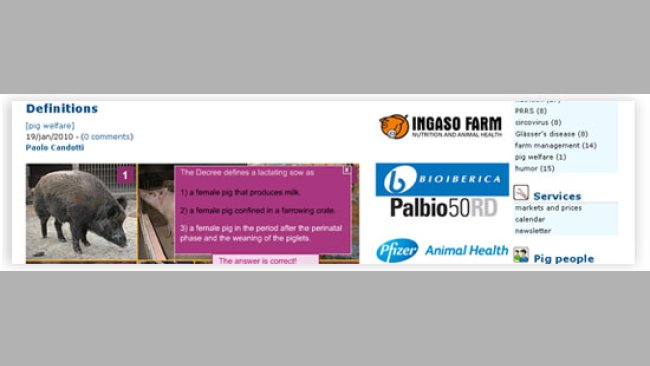 We have just added a new section, Pig welfare, to pig333, on the European legislation about the minimum standards for the protection of pigs (2001/88/EC of 23/Oct/2001 and 2001/93/EC of 9/Nov/2001). This section has an interactive format of questions and answers starting from a photograph, and has been prepared by Paolo Candotti.