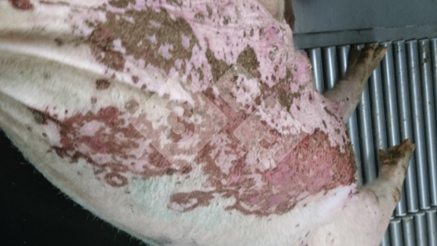 Possible causes: ErysipelaExudative EpidermitisMangePorcine circovirosisSunburnPityriasis roseaOther