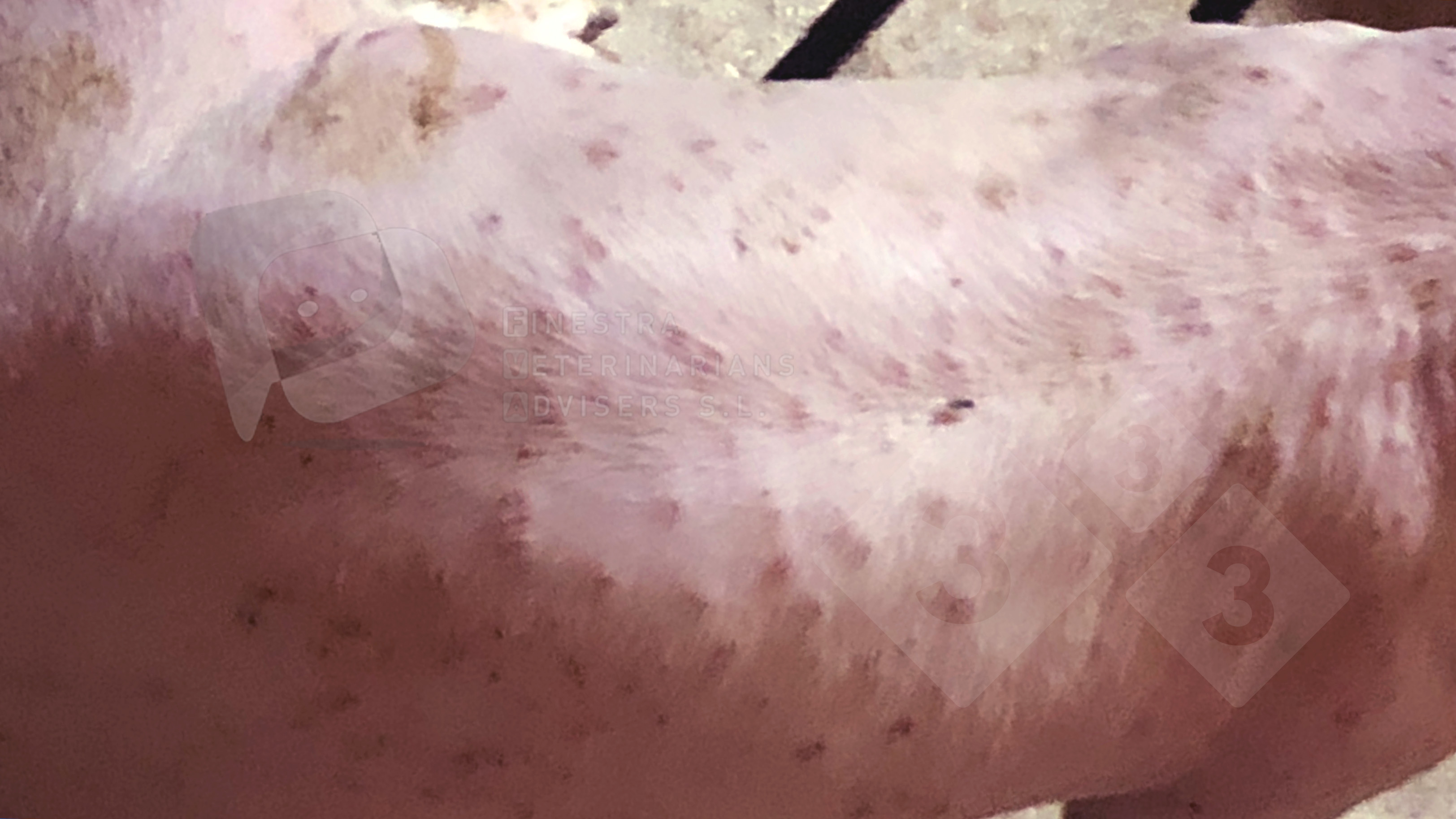 Dermatitis caused by mosquito bites. Erythematous and oedematous rashes along with other dermatological findings such as macules, papules, and urticaria represent the most common clinical manifestations of insect bites. The bites usually occur in the areas of thinner or exposed skin, where pinpoint lesions can be seen where the insect has fed.