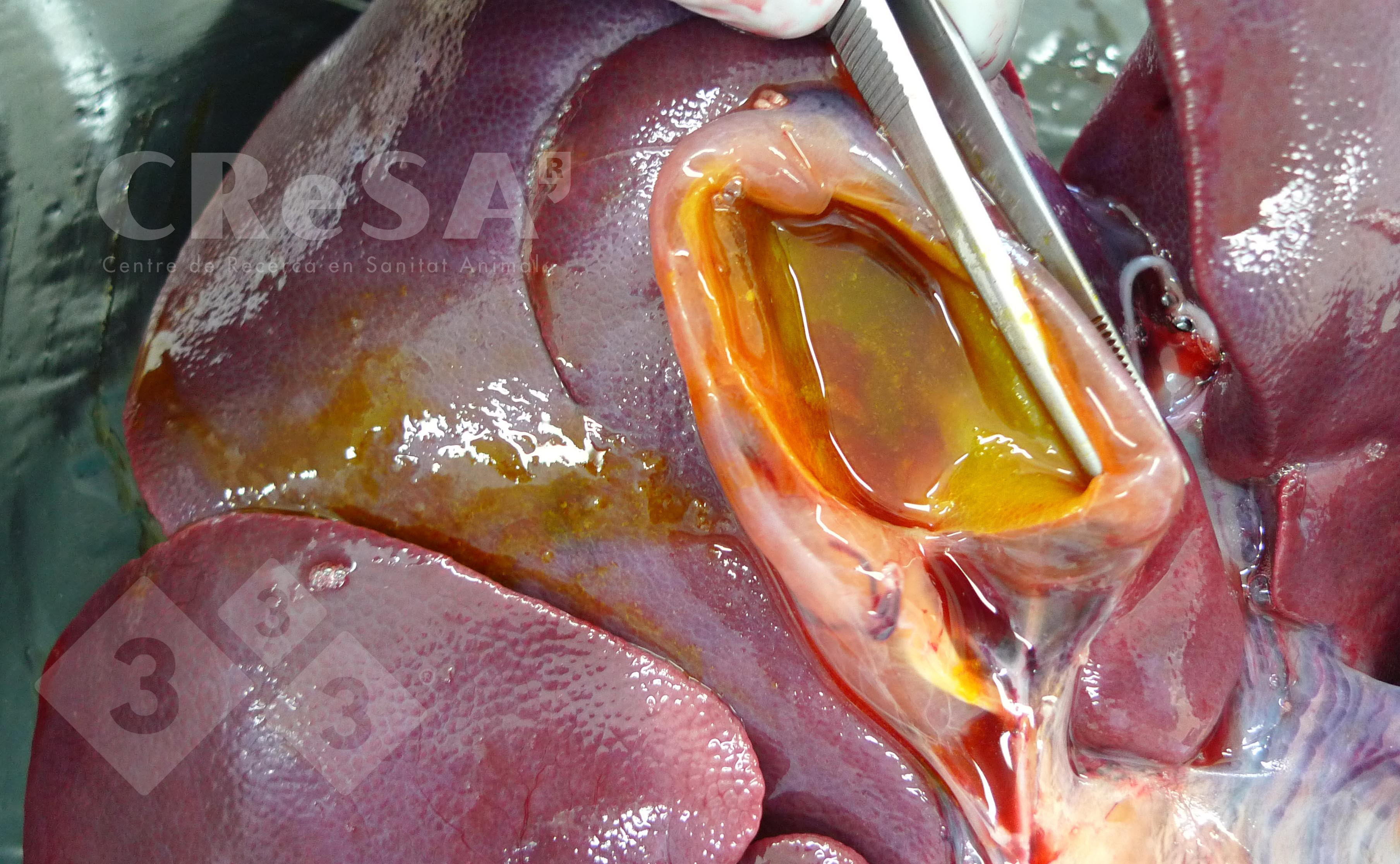 African swine fever (ASF) virus can cause edema of the gallbladder wall, as seen in the picture. However this is a rather unspecific change that can be observed in many pathological conditions including edema disease, hepatosis dietetica, toxicosis, etc.
