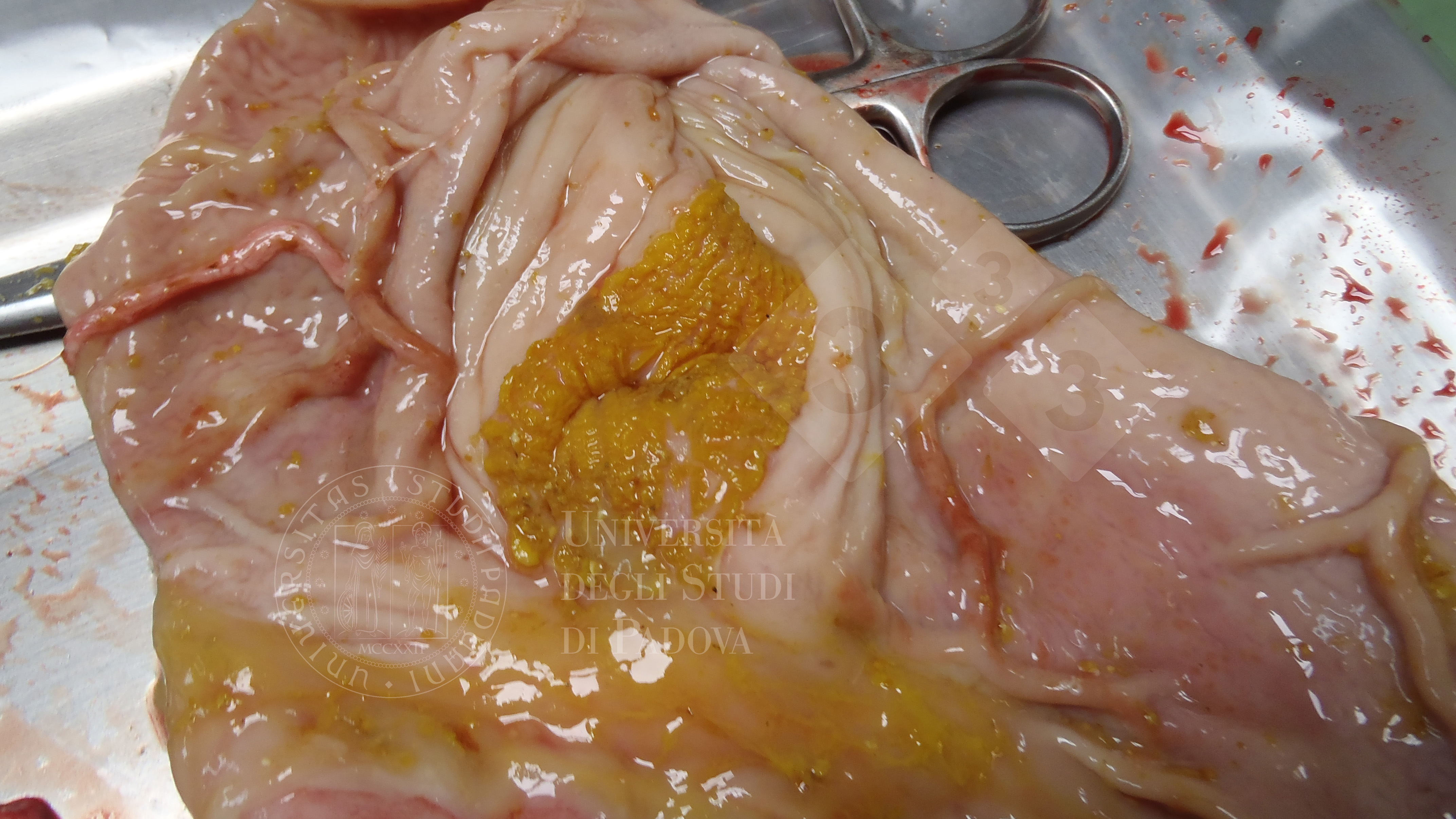 This was an occasional finding in a pig of 30-32 kg of weight. No clinical signs nor changes in feed consumption were observed in the herd.