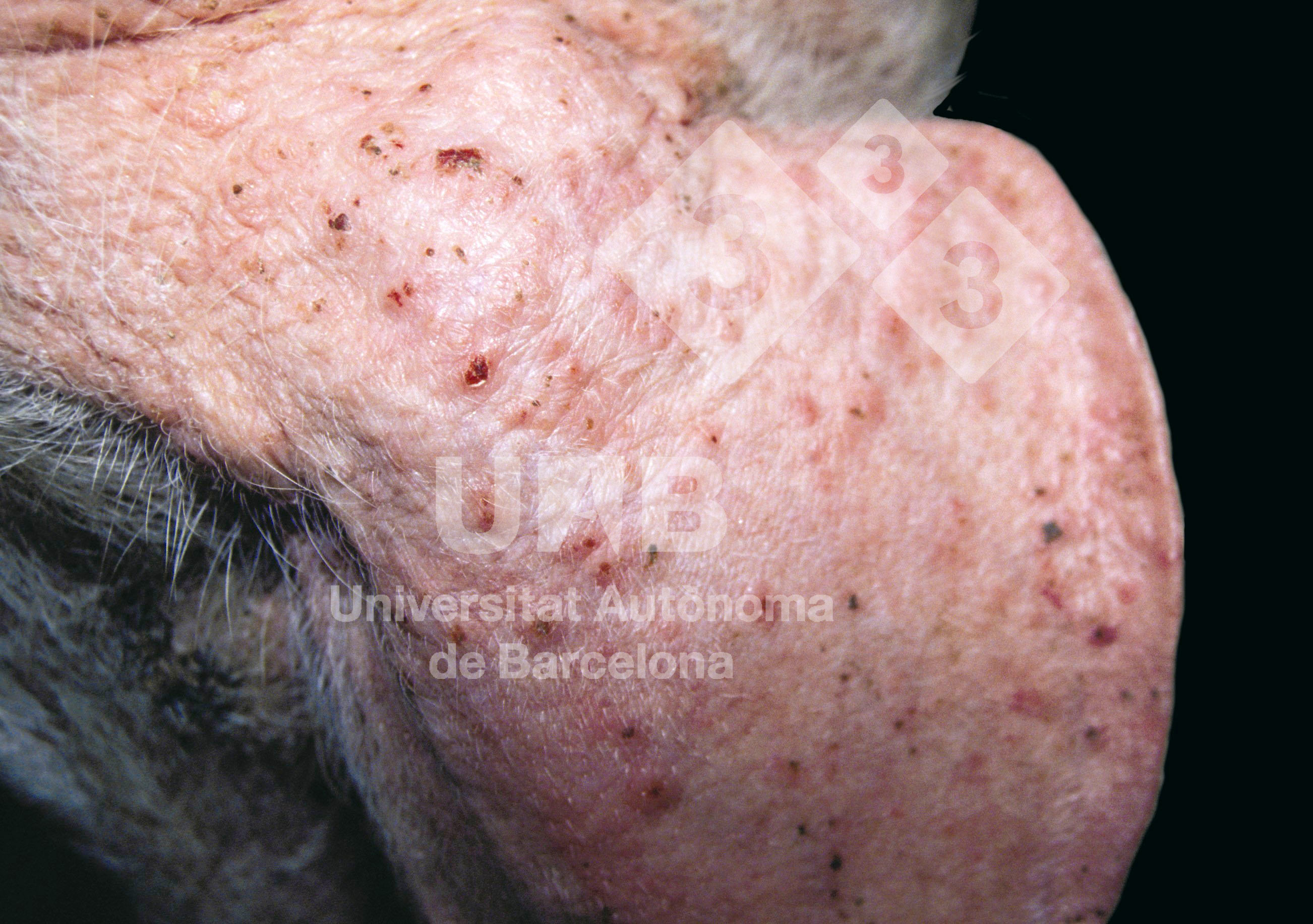 These multifocal, red, slightly elevated and discrete lesions are called papules and are usually associated with insect bites. Erysipelas presents with diamond-shaped erythematous skin lesions and PDNS with crusty and necrotic areas on the skin.