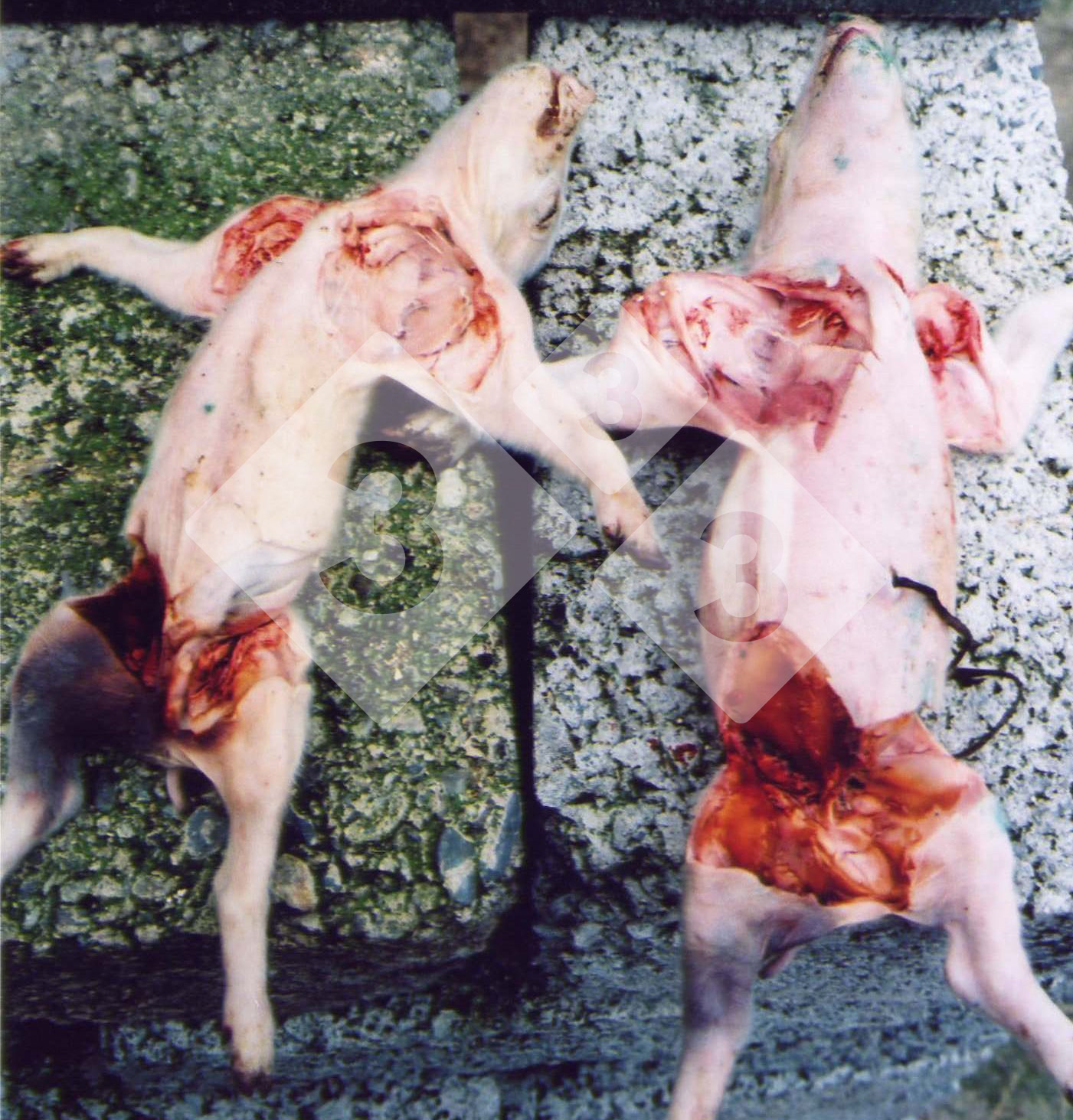 Muscle necrosis and death after iron injection - Atlas of swine pathology