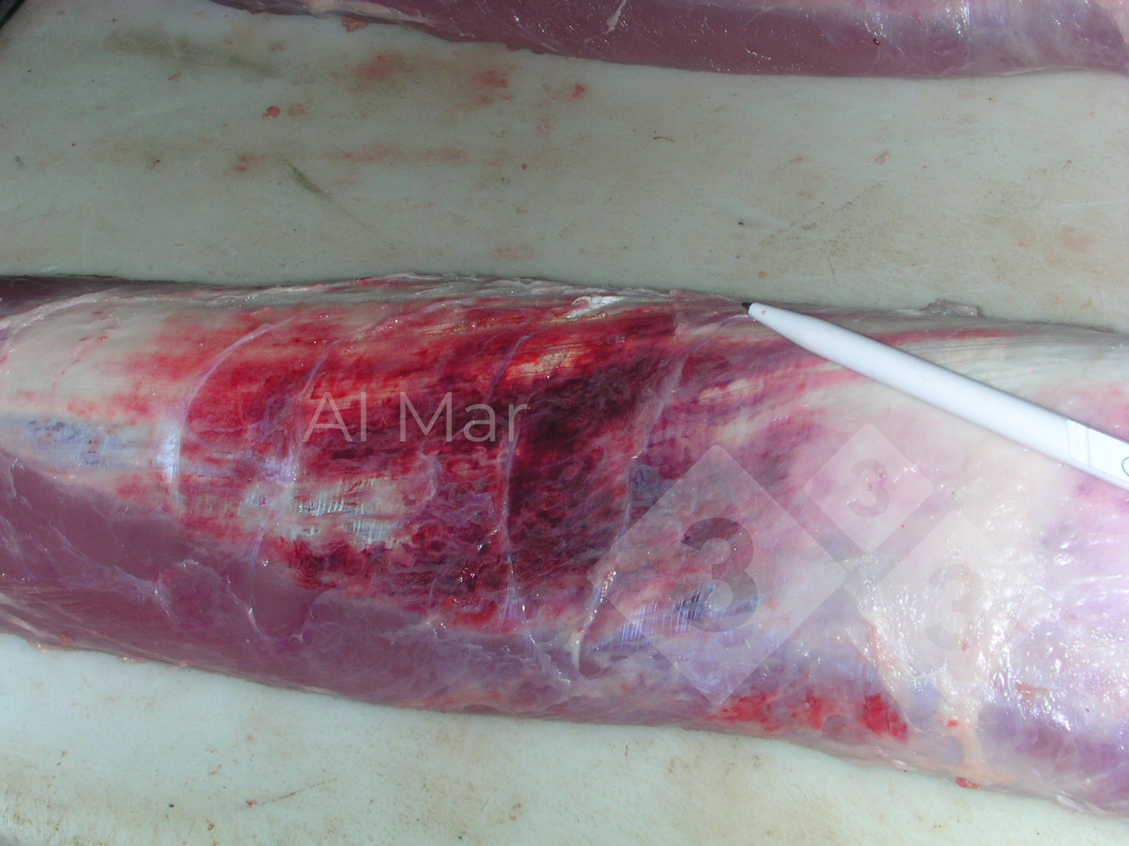 Pork loin with bruise damage - Atlas of swine pathology