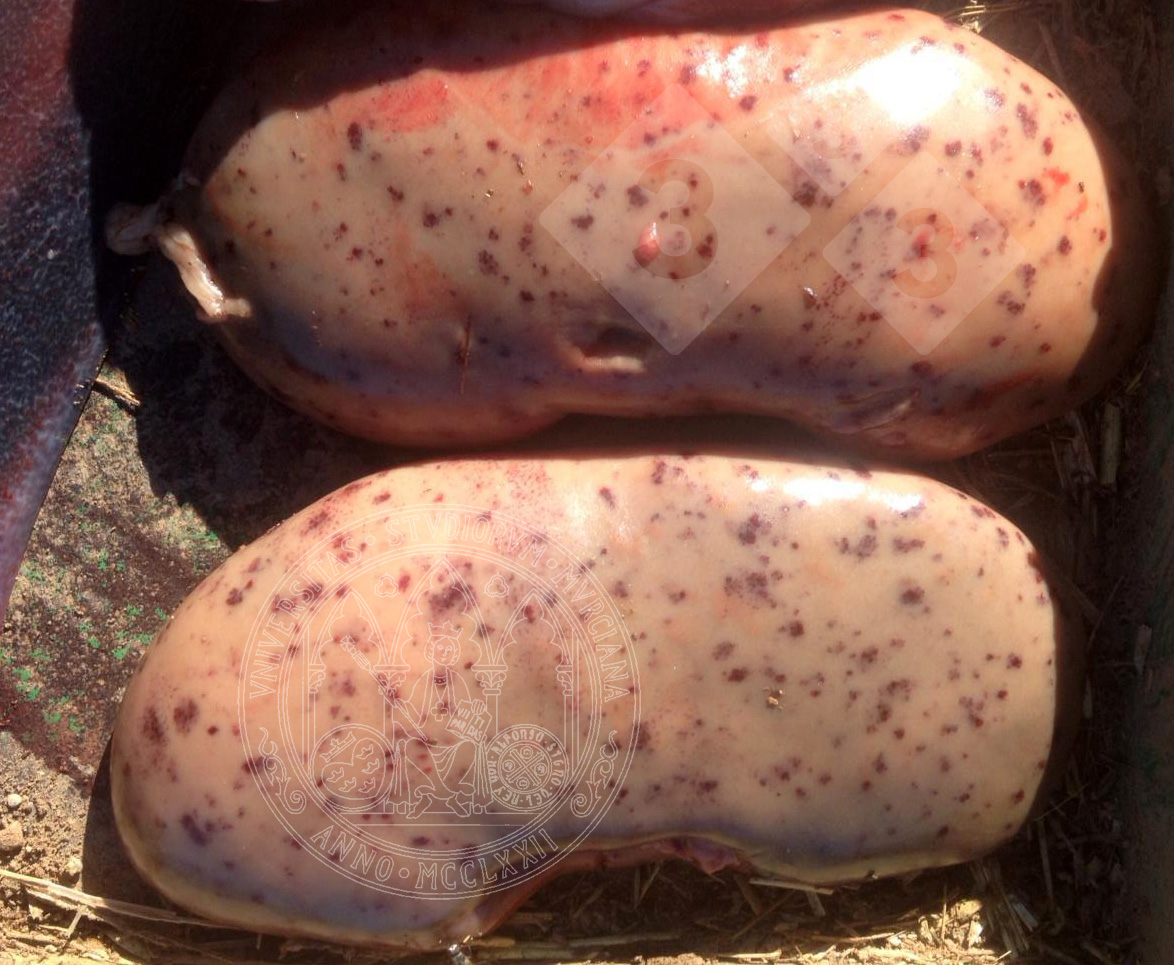 A differential diagnosis must be made with diseases that cause multifocal hemorrhages such as septicemias from other bacterial agents, swine fevers, or infections from highly pathogenic strains of PRRS virus.