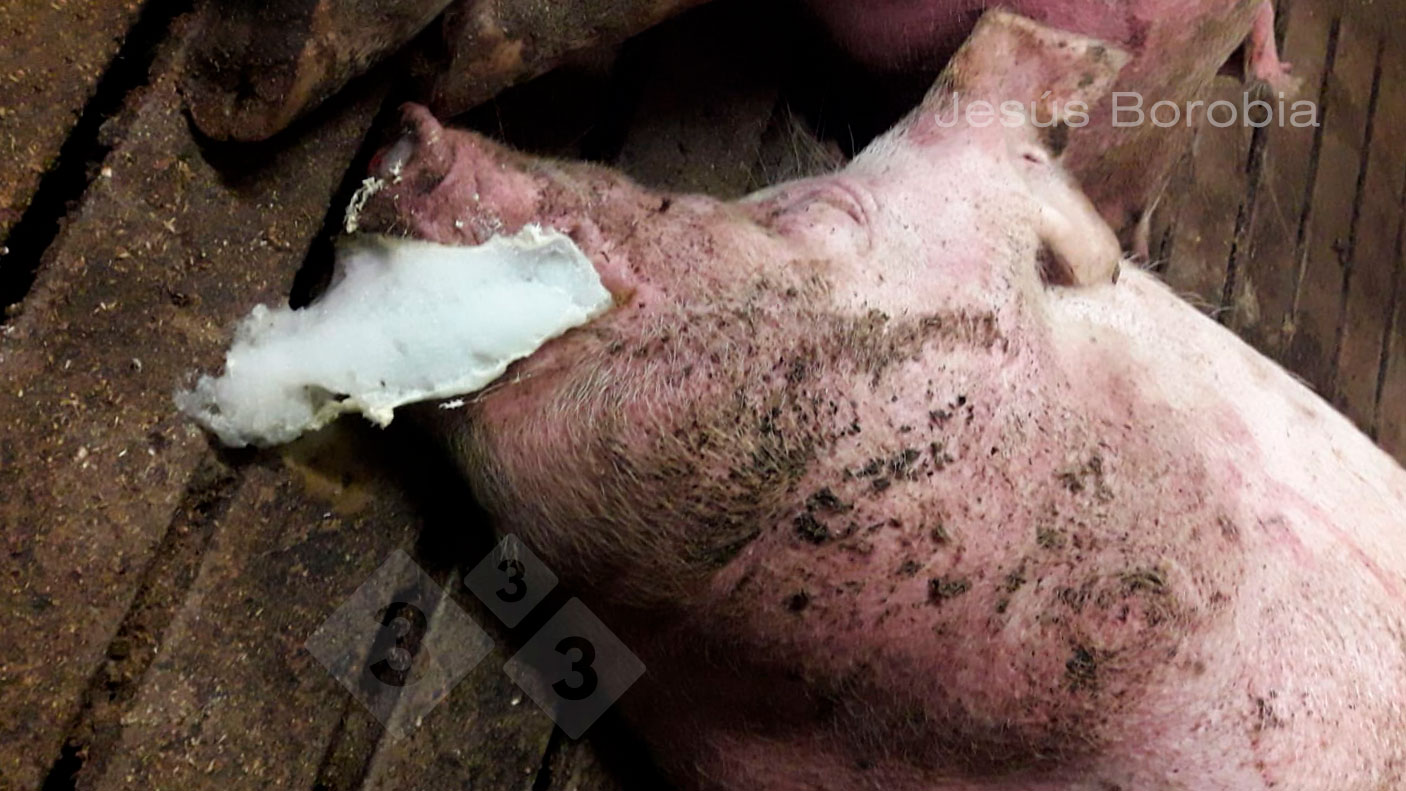 Salivation and cyanosis of the lower parts of the body are observed in 20 gilts found dead in the same building. It was caused by Nitrogen dioxide (gas poisoning).