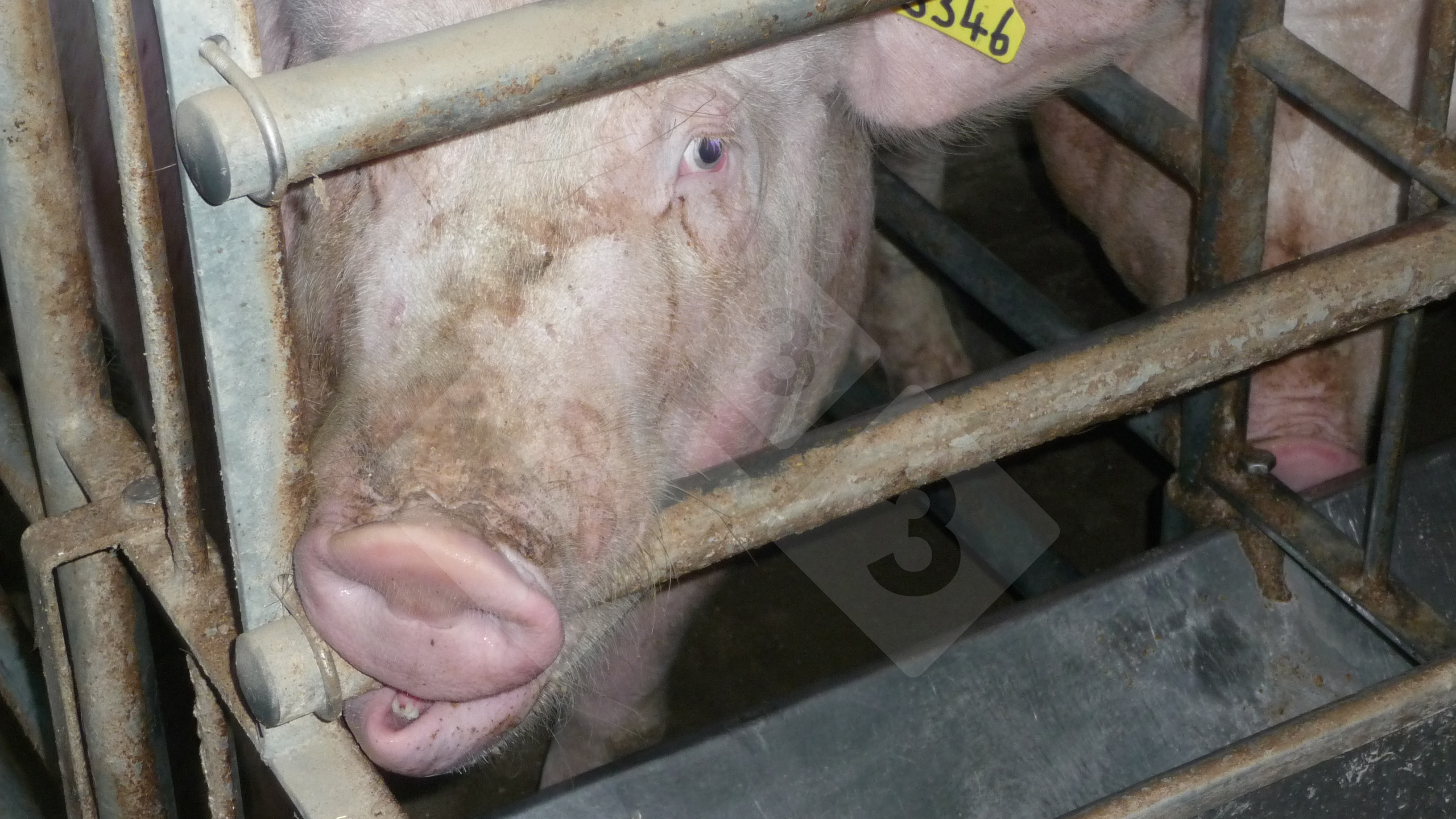 Stereotypic behaviours are not common in pigs and mostly relate to management, boredom, and nutrition. The most common stereotypic behaviour in the breeding herd is bar biting when the animals are confined in stalls or tether systems, like in this case. Sow stalls have been banned in the EU since January 2013, although their use is allowed for up to four weeks after mating. They have been completely banned in the UK since 1999.