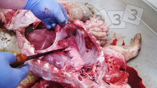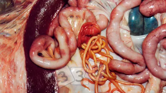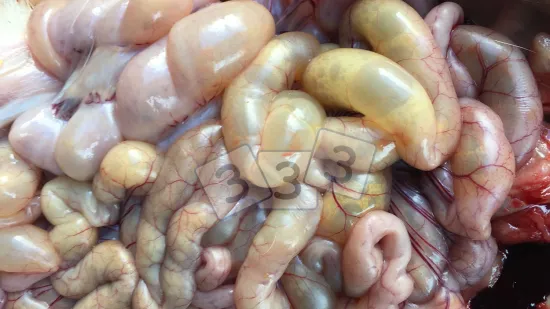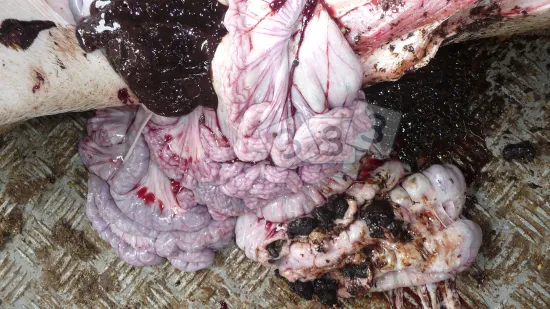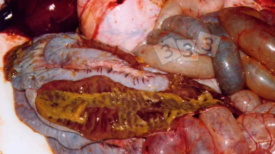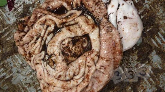 Small intestine opened during a routine check in the slaughterhouse: what can we see?