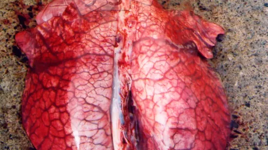 There is an increase of ill thrift and laboured abdominal breathing in the weaners. There were poor response to antimicrobial treatment. Mortality ranges from 6 to 15%. What is the most likely cause of this lesion?