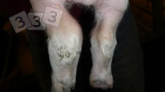 This is a newly born piglet that cannot stand on its feet for walking. What is the most likely cause of this lesion?