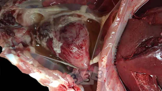 The unit has an increase of coughing and poor growth rates. What is the most likely cause of this lesion?