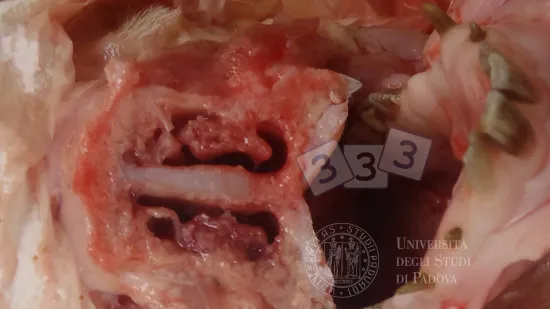 A first parity weaned sow can not hold her weight. It shows poor response to antibiotics and NSAIDS. What is the most likely cause of this lesion?