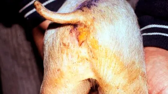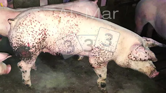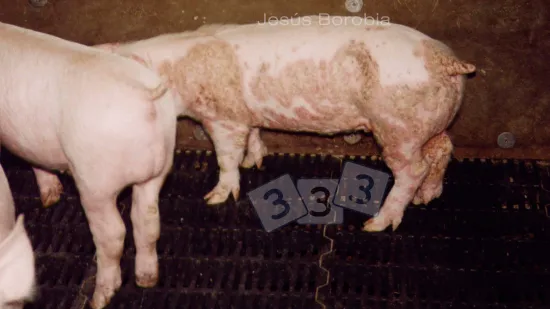 This 6-week-old pig has non-pruritic lesions on the skin. What can it be?