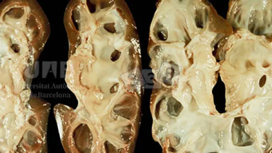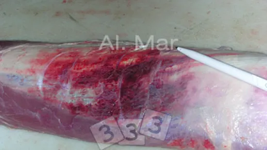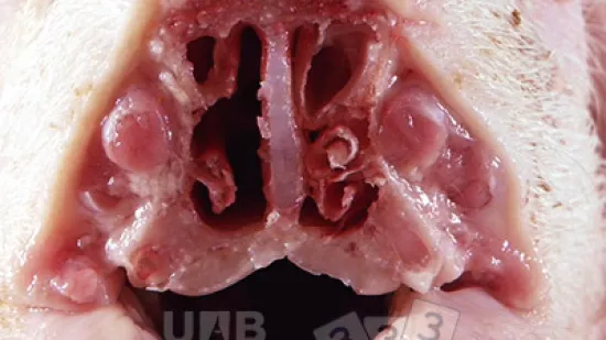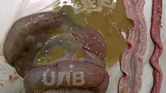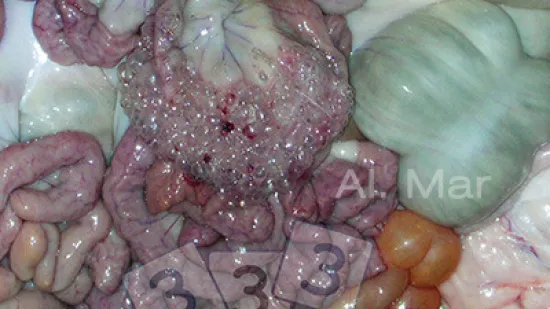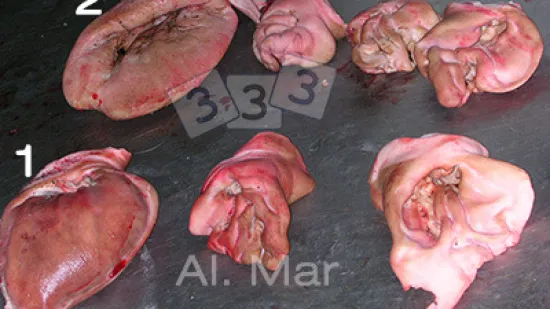 These lesions detected in a pig slaughtered at 110 kg LW are due to: